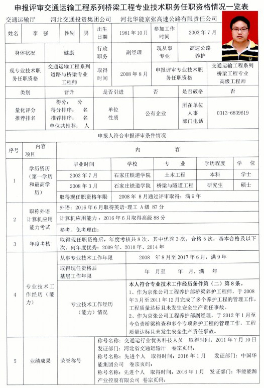 京張公司2017年度專業(yè)技術(shù)職稱申報(bào)公示(李強(qiáng))