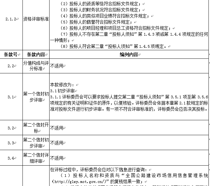 投標(biāo)人應(yīng)進(jìn)入交通運(yùn)輸部“全國公路建設(shè)市場信用信息管理系統(tǒng)(http://glxy.mot.gov.cn)”中的公路工程施工資質(zhì)企業(yè)名錄,且投標(biāo)人名稱和資質(zhì)與該名錄中的相應(yīng)企業(yè)名稱和資質(zhì)完全一致。