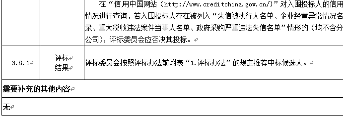 3.4在“信用中國”網(wǎng)站(http://www.creditchina.gov.cn/)中被列入失信被執(zhí)行人名單、企業(yè)經(jīng)營異常名錄、重大稅收違法案件當(dāng)事人名單、政府采購嚴(yán)重違法失信名單(均不含分公司)及國家企業(yè)信用信息公示系統(tǒng)(http://www.gsxt.gov.cn/)中被列入嚴(yán)重違法失信企業(yè)名單(不含分公司)的投標(biāo)人,不得參加投標(biāo)。