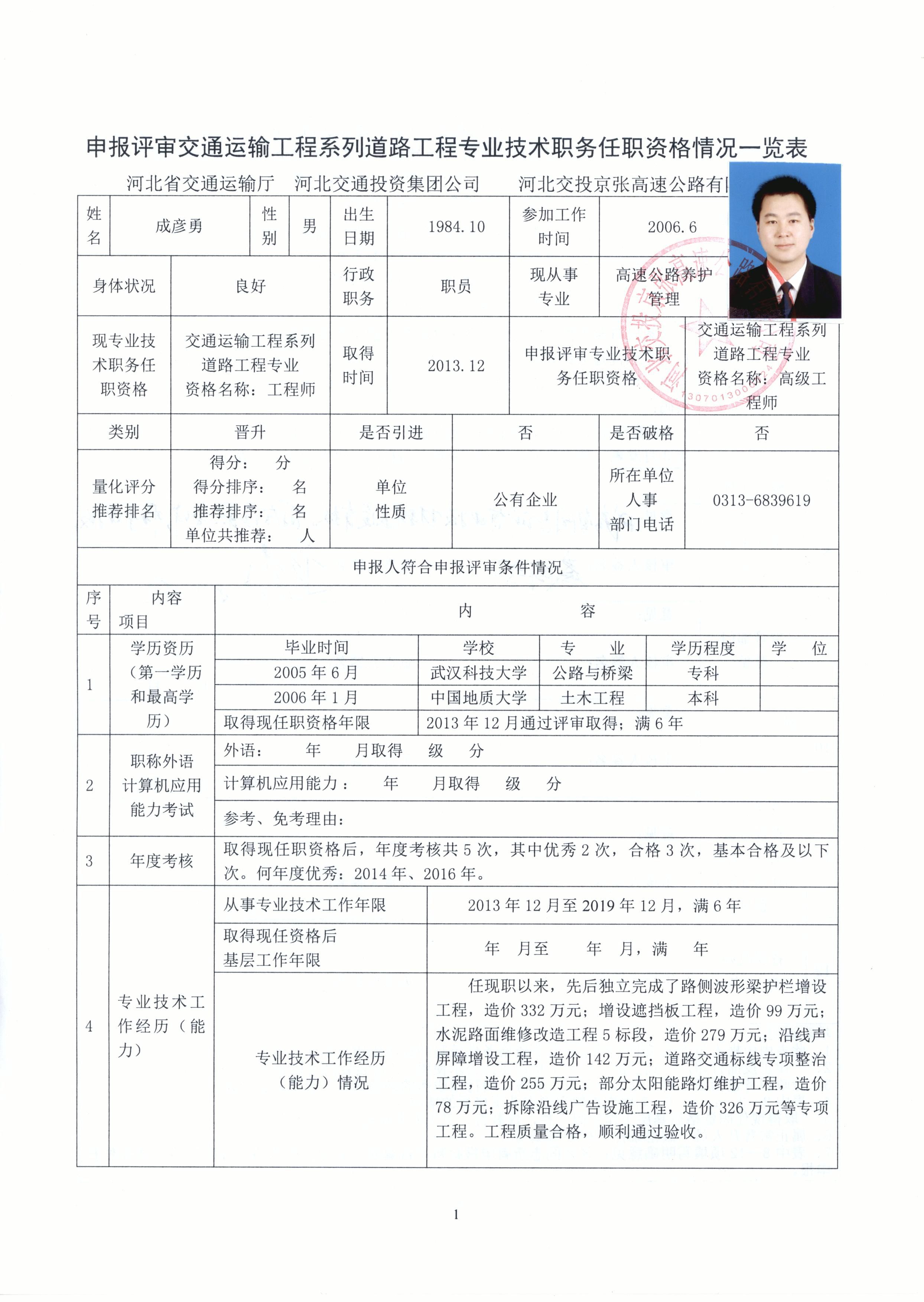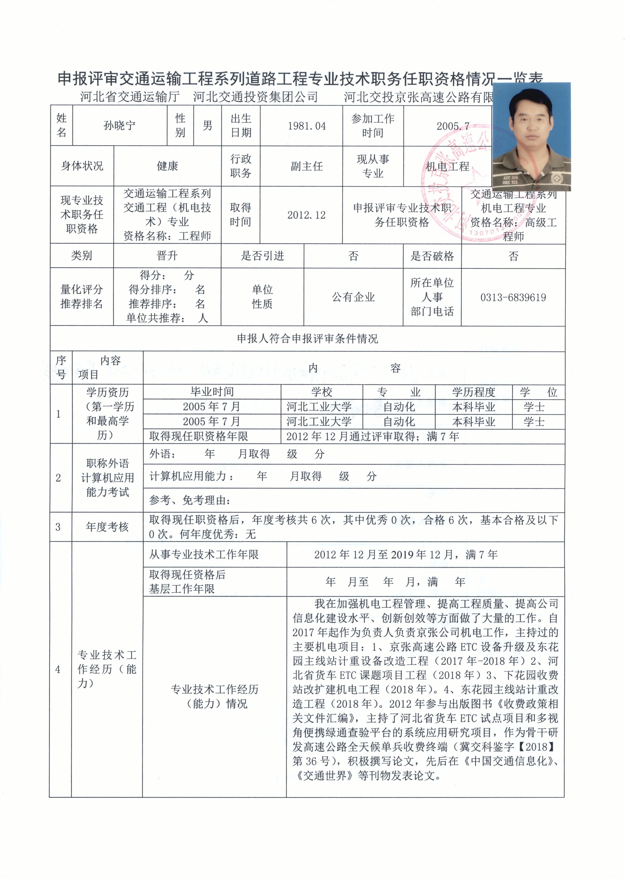 河北交投京張高速公路有限公司2019年度職稱申報(bào)人員基本情況公示
