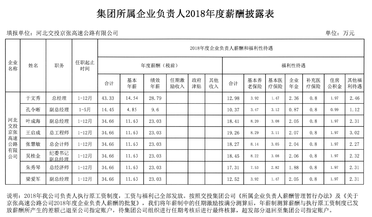 集團(tuán)所屬企業(yè)負(fù)責(zé)人2018年度薪酬披露表